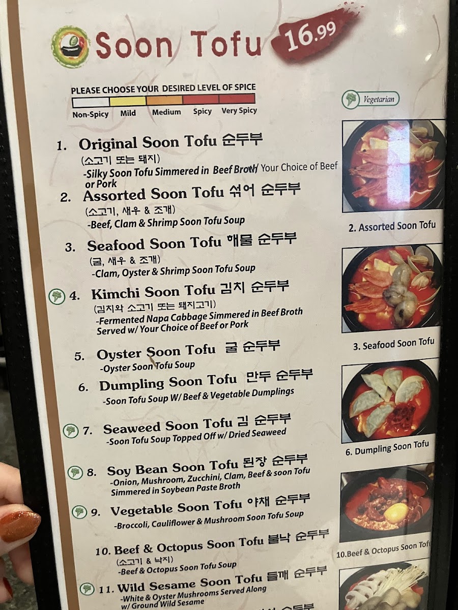 - Combination meals featuring grilled beef or chicken alongside traditional soon tofu soups